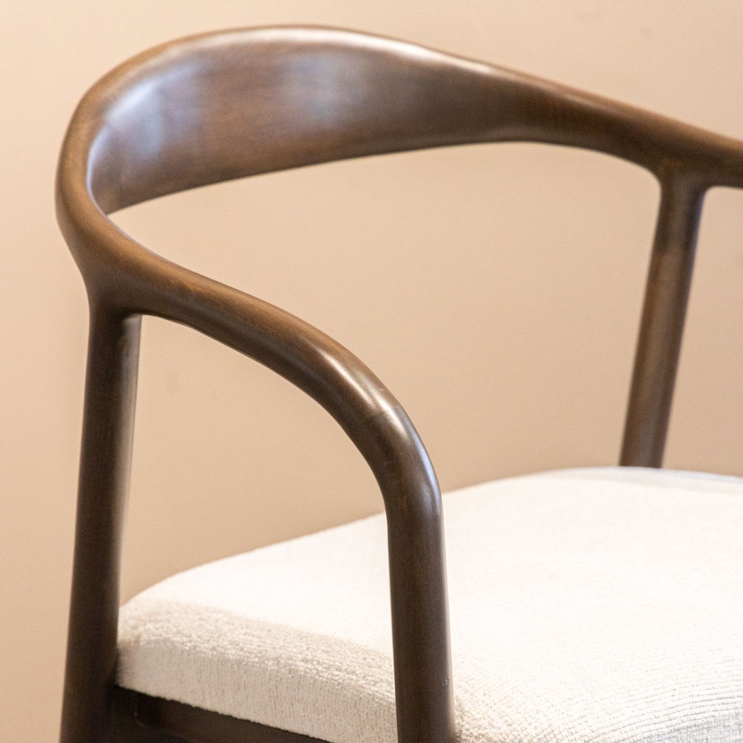 Glamour stolica je spoj savremene elegancije i prirodne topline drveta. Izrađena je od masiva bukve, koji je pažljivo bajcovan u tamniju nijansu kako bi dodatno naglasio prirodnu teksturu i profinjen karakter ovog modela.