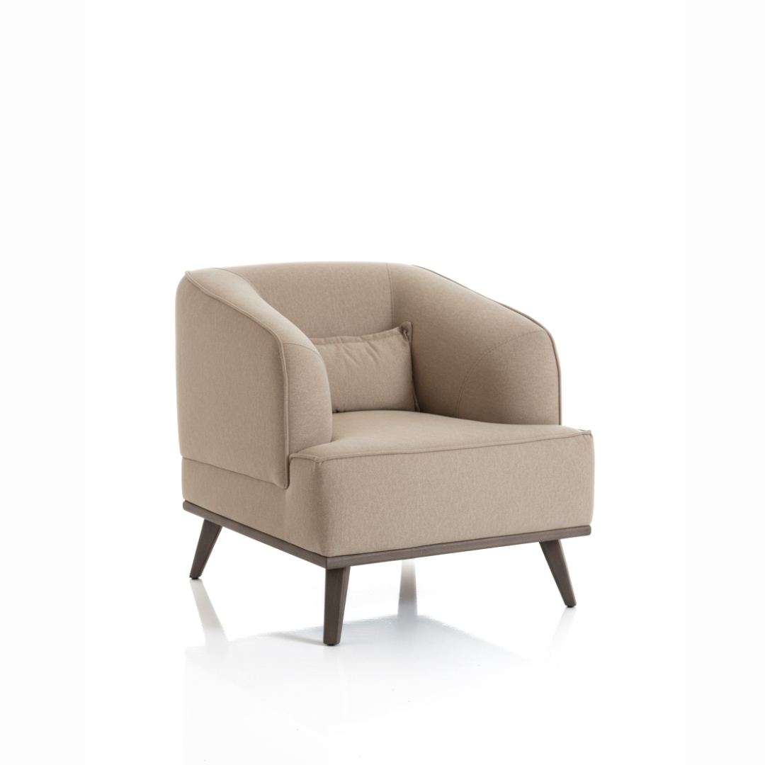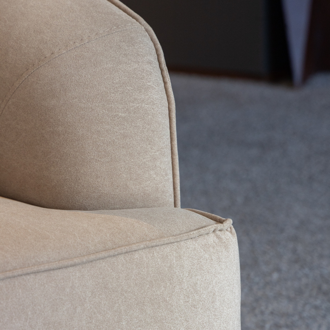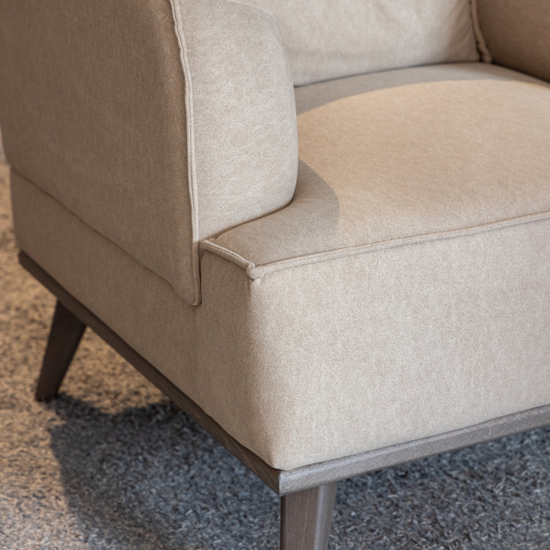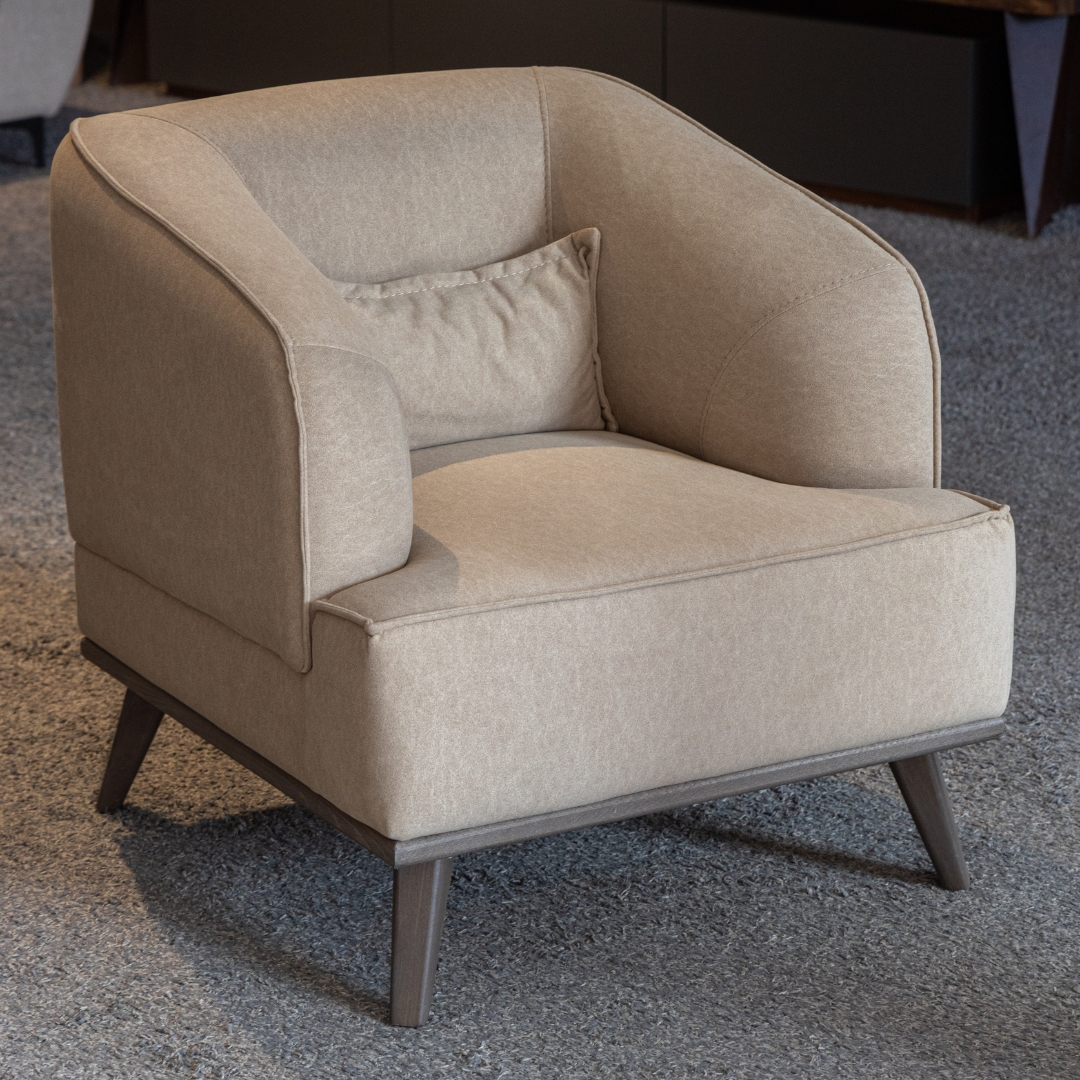 Libra fotelja donosi savršen balans modernog dizajna, udobnosti i funkcionalnosti. Njene meke, zaobljene forme kreiraju prijatan i topao vizuelni utisak, dok elegantno podignuta konstrukcija na drvenim nogicama daje lakoću i profinjen izgled u prostoru.